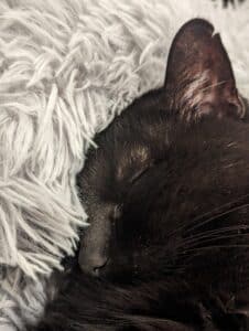 Gobbles chose us on a cold Thanksgiving weekend 17 years ago and has been a part of our family ever since. Sweet and silly, with the softest, thick black fur—so perfect for snuggles. Shy with strangers but always loved to be with her people. Kitty, you made every day with us better, and we miss you already!